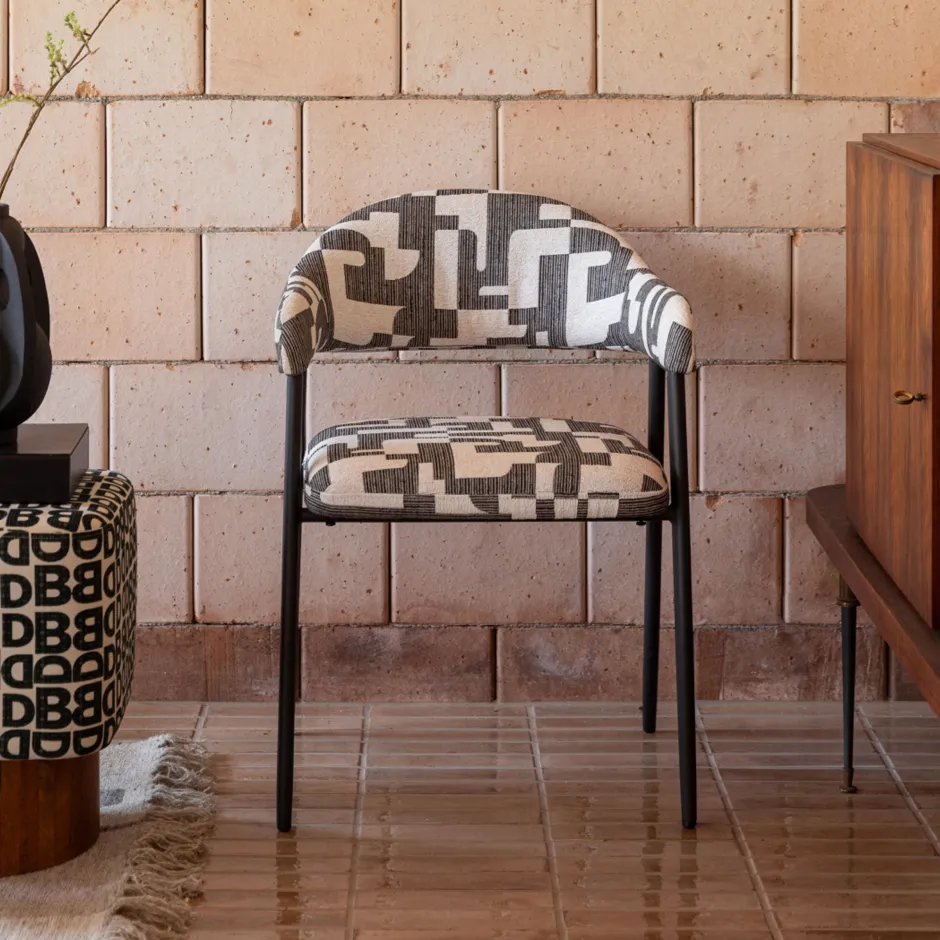 In de eetkamer kom je samen met geliefden om te genieten van lekker eten, goede koffie en mooie verhalen. Dat doe je extra comfortabel in de Dutchbone Miyo. Deze eetkamerstoel is dankzij de zachte zitting, rugleuning en armleuningen namelijk goed voor urenlang zitplezier. Maar wat deze stoel pas echt uniek maakt, is natuurlijk de bijzondere look. De grafische patronen en het matzwarte, metalen onderstel maken dit meubel tot een waar statement piece. Toch voegt de geweven bekleding in zachte kleurtinten tegelijkertijd ook warmte toe, waardoor de eethoek al snel verandert in een knusse plek – a place to warm your soul.