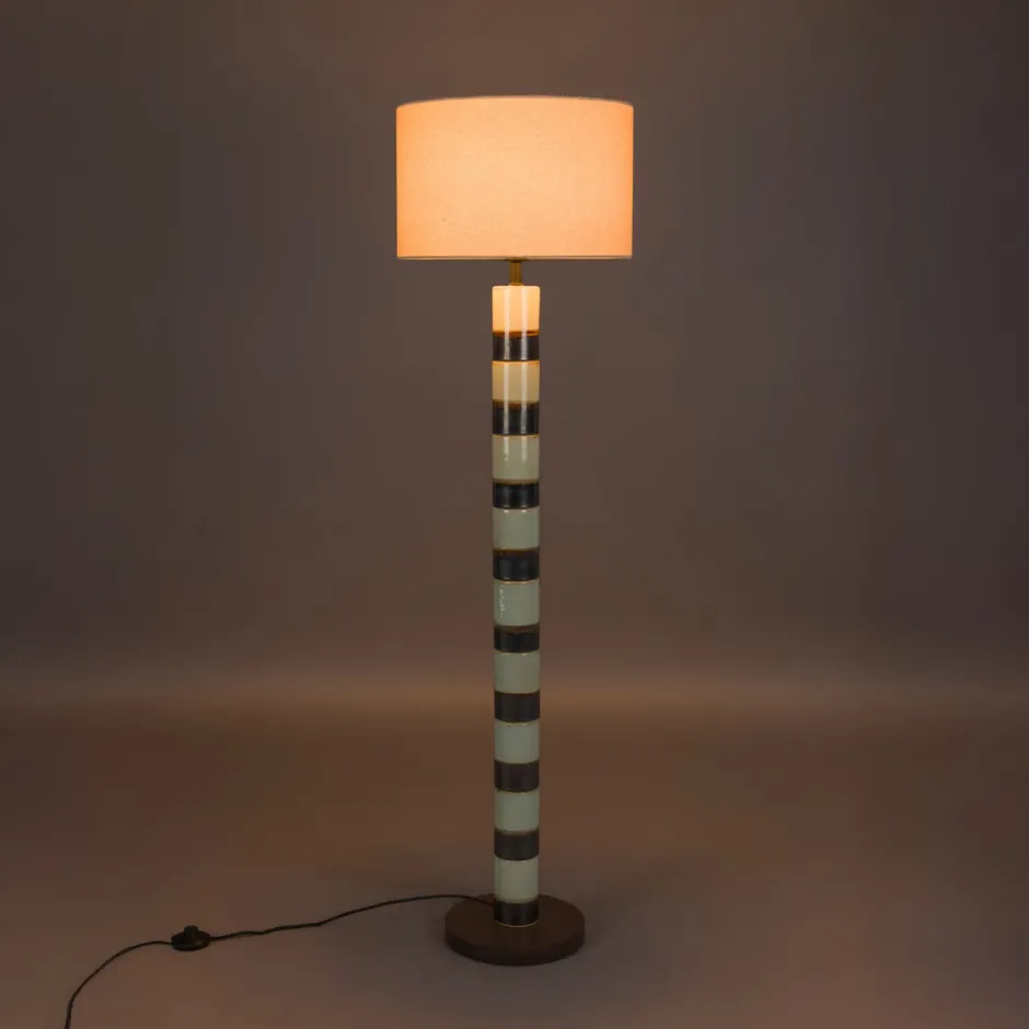 | Materiaal: | Keramiek, notenhouten voet en katoenen lampenkap |