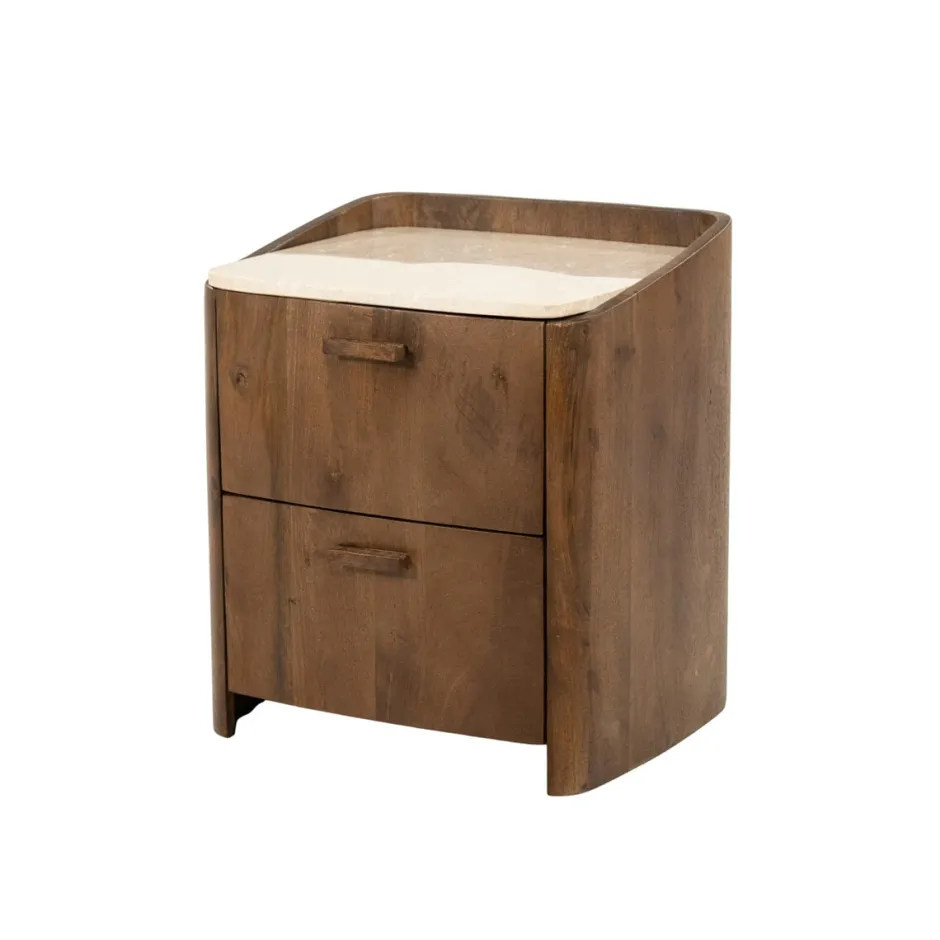 Sale Eleonora Nachtkastje Mabel Marmer en mangohout, Met 2 lades Bruin