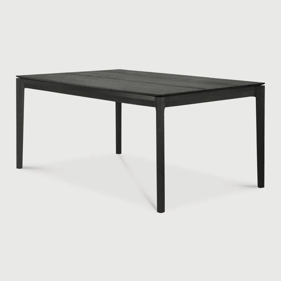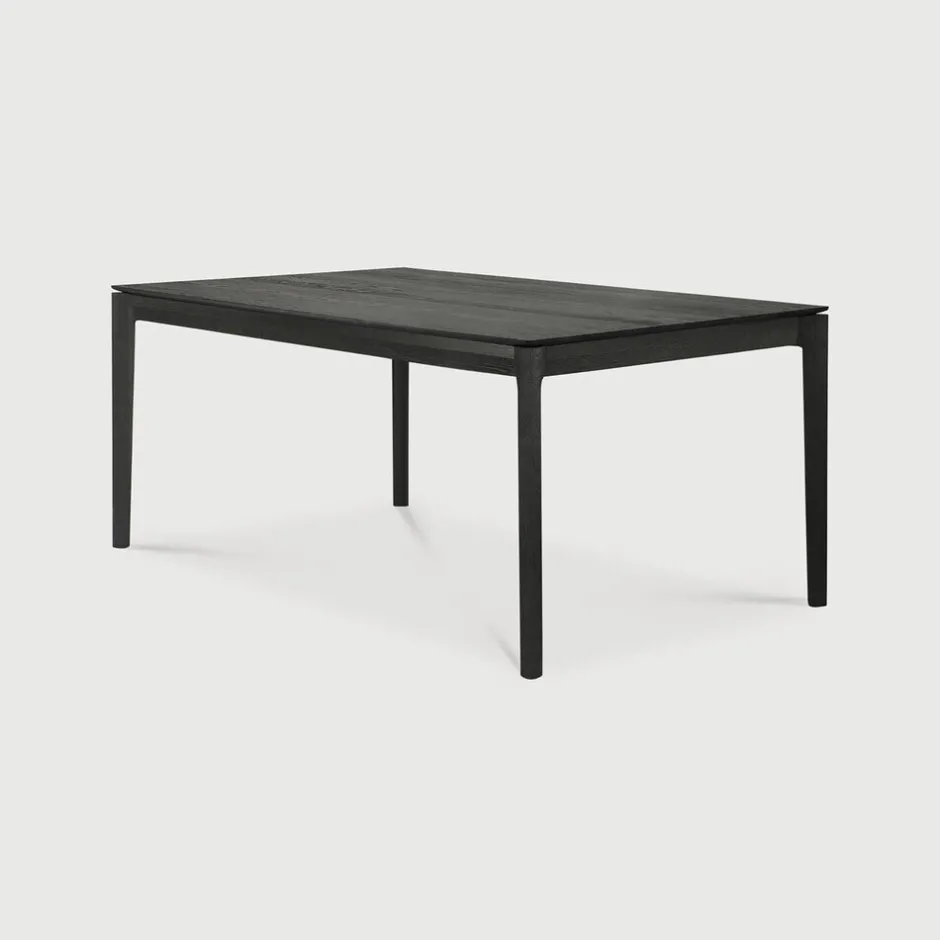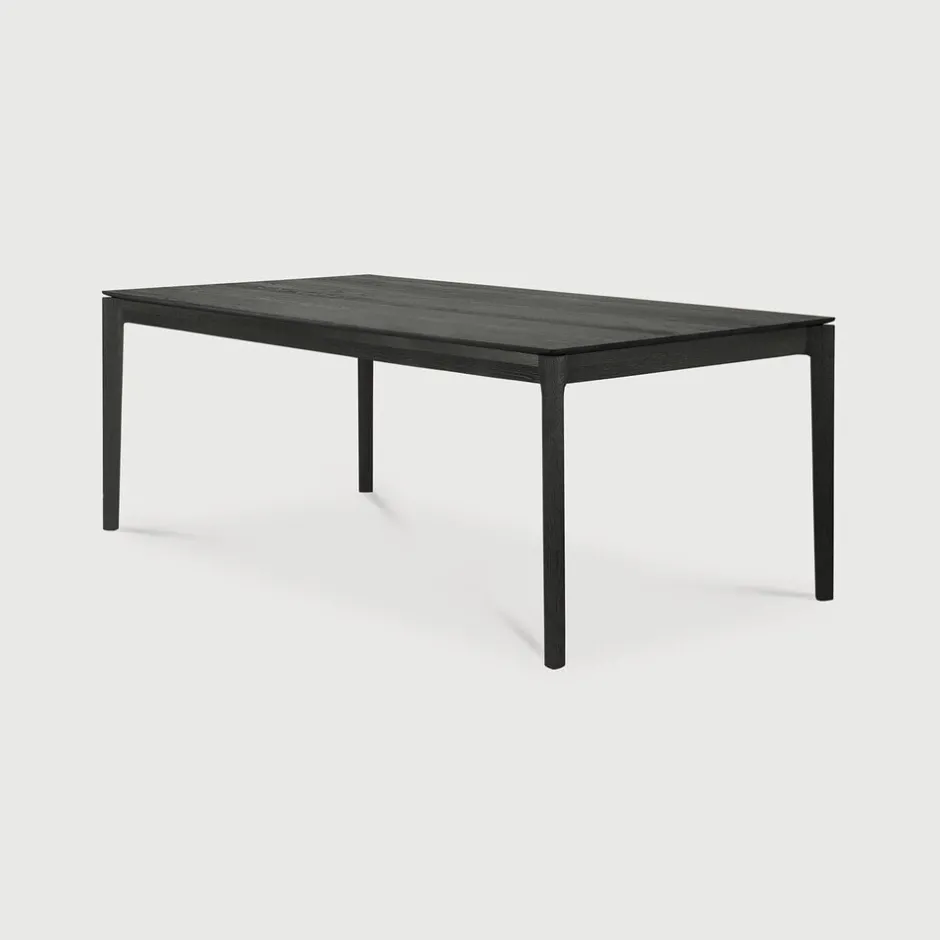 Onze iconische Bok tafel, uitschuifbaar zodat er nog meer mensen samen kunnen komen. De luchtige vorm en solide constructie van deze zwarte massief eiken uitschuifbare eettafel maken het tot een tijdloos meubelstuk en een bijzonder design om eindeloos van te genieten.