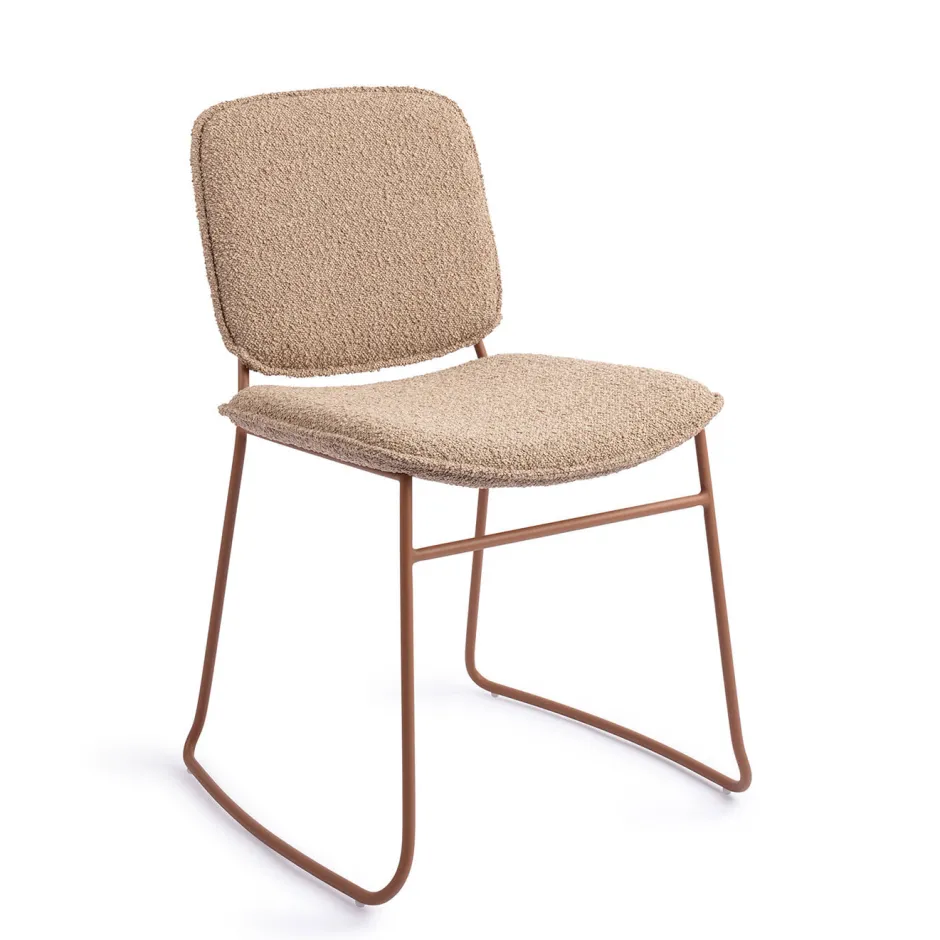 Een echte blikvanger die zowel chic als comfortabel is. Deze eetkamerstoel is gehuld in een prachtige Beige die we Cotton Candy noemen, en combineert een kleurrijk mat gepoedercoat frame met zachte bouclé-stof voor een speelse touch van klasse. De ton-sur-ton kleurcombinatie ziet er schitterend uit, en de slanke slee-basis in metaal voegt een moderne charme toe en zorgt voor stabiliteit. Met de zacht gebogen rugleuning zit je lekker, en is de Makio perfect om gasten langer gezellig aan tafel te houden. Dankzij de eenvoudige zelfmontage zit je in no-time comfortabel en stijlvoller te zitten in huis.