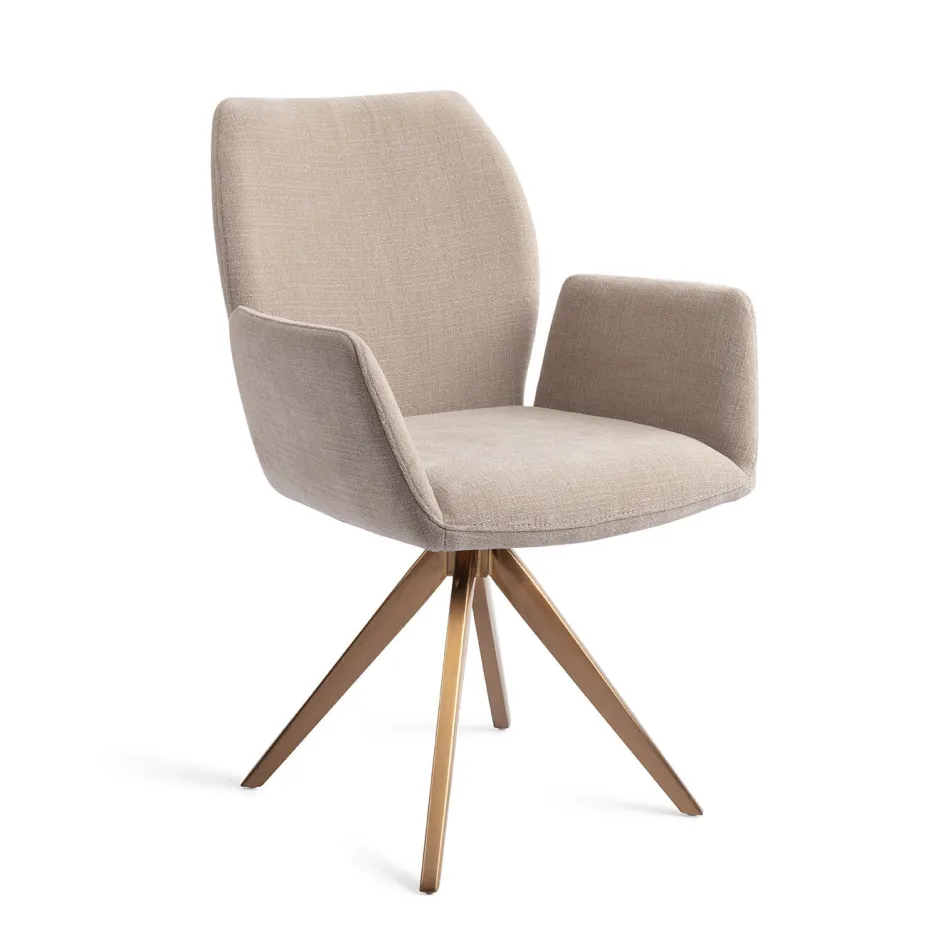 De Misaki eetkamerstoel van het merk Jesper Home valt meteen op in je eethoek door de uitlopende armleuningen. Deze zorgen voor een comfy zit, net als de zachte polyester stof waarmee de stoel bekleed is. Deze stof heeft iets weg van een luxe badstof en voelt daardoor heerlijk zacht aan. De armleuningen zijn niet verbonden met de rugleuning, het lijken als het ware vleugels. Wij zijn echt fan van dit trendy ontwerp dat zeker zal schitteren in jouw eethoek.