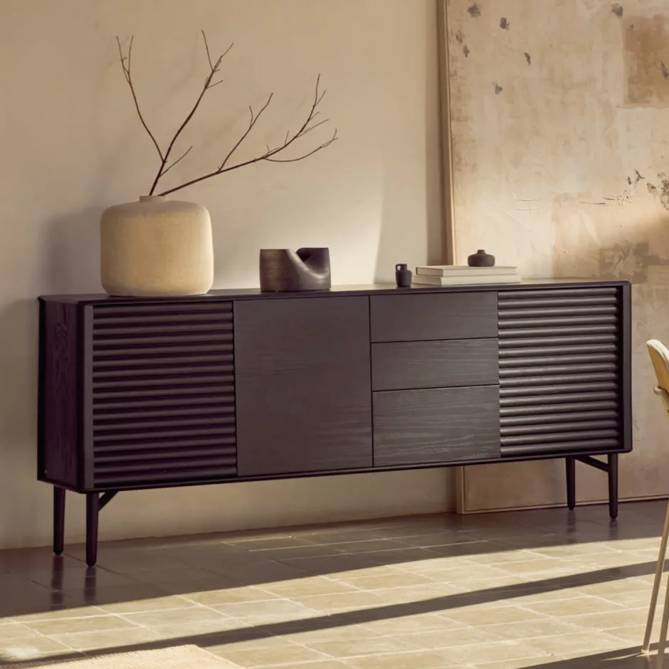 - Dressoir in massief eiken met zwart gebeitste afwerking.