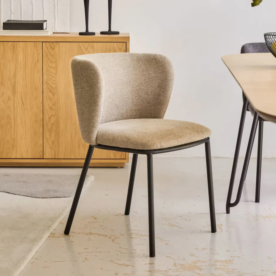 Design voor maximaal comfort met een eigentijdse vorm: De Ciselia stoel voegt een vleugje stijl toe dankzij de bekleding in trendy chenille stof. De perfecte stoel om elk moment speciaal te maken.