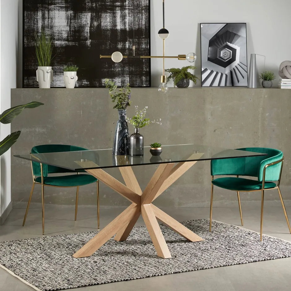 Discount Kave Home Eetkamerstoel Granite Chenille en noten essenhout