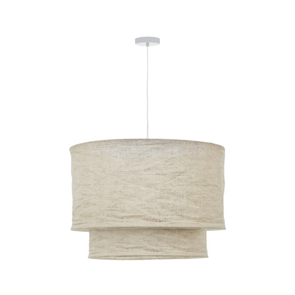 - Linnen plafondlampenkap met beige afwerking.