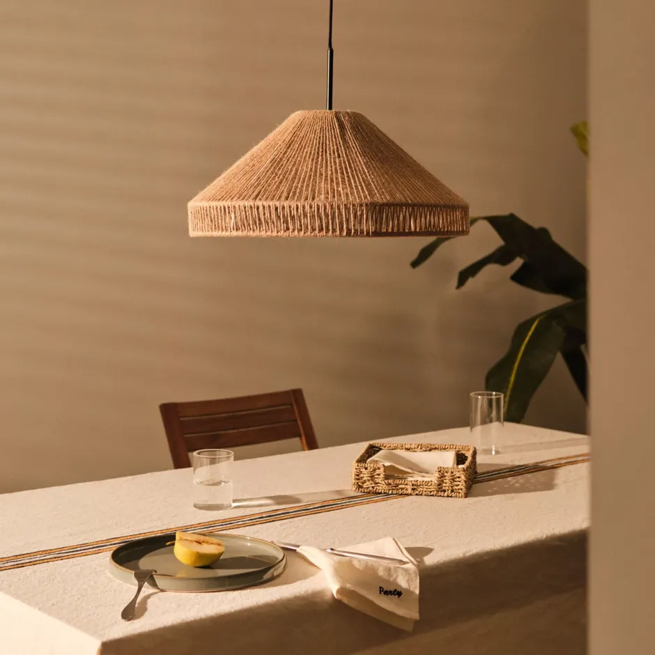 Perfect boven de eettafel, in een zithoek of in de hal, voegt de Pontos lampenkap direct sfeer en warmte toe. Dankzij de natuurlijke kleur en het verfijnde handwerk past hij prachtig bij een Japandi of bohemian interieur, waar authentieke materialen en textuur centraal staan. Een stijlvol statement met een warme uitstraling.