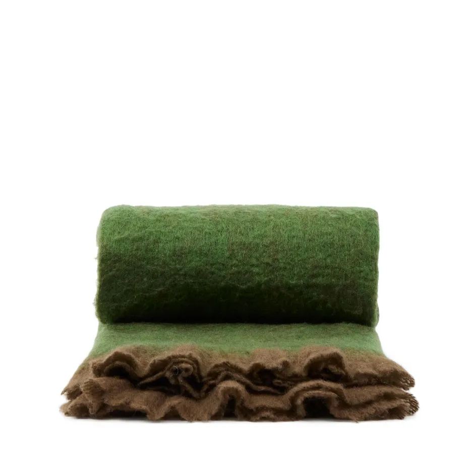 Deze plaid van een mix van gekaarde wol onderscheidt zich door zijn warme en omhullende textuur, perfect om elke ruimte gezellig te maken. De ruches zorgen voor een subtiele en elegante decoratieve toets. Elke plaid is met de hand geweven, waardoor elk stuk uniek is en lichte variaties kan vertonen. De samenstelling biedt een evenwicht tussen zachtheid en duurzaamheid – ideaal om je warm te houden.