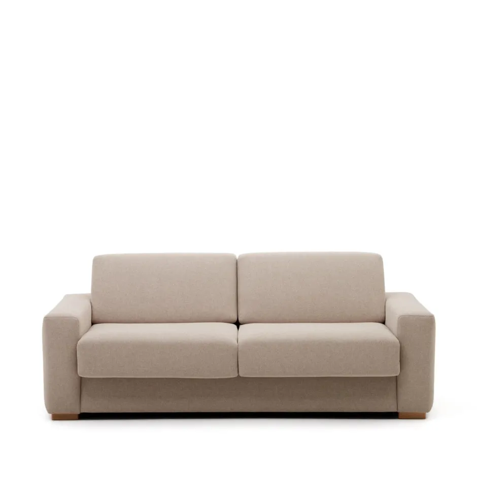 - Slaapbank met massief beukenhouten poten en bekleed met een gestructureerde beige stof met hoge slijtvastheid die machinewasbaar is. Zitting en rugleuning met afneembare bekleding.