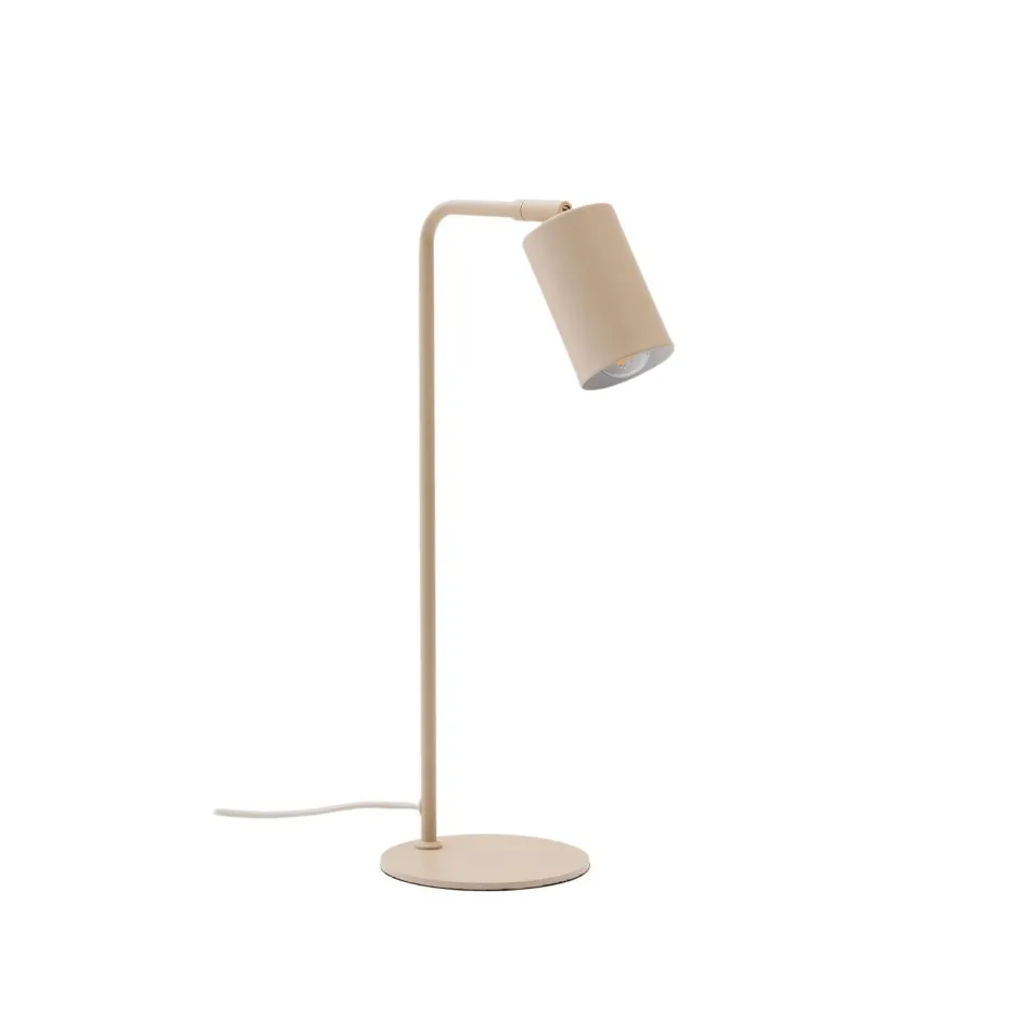 De Manie bureaulamp van metaal met een beige getextureerde afwerking is de ideale aanvulling om een vleugje elegantie en functionaliteit toe te voegen aan elke ruimte. Het minimalistische ontwerp past perfect in moderne en hedendaagse omgevingen en biedt een strakke esthetiek zonder persoonlijkheid te verliezen. De kap heeft een verplaatsbare spot waarmee u de richting van het licht kunt aanpassen aan uw behoeften, ideaal om een spotlight te creëren om te lezen of om decoratieve elementen op de muur te accentueren. Deze bureaulamp is compatibel met E14-lampen tot 25W, zodat u het type verlichting kunt kiezen dat het beste past bij elke ruimte en omgeving. De gloeilamp wordt apart verkocht, zodat u de intensiteit en de toon van het licht volledig zelf kunt aanpassen.