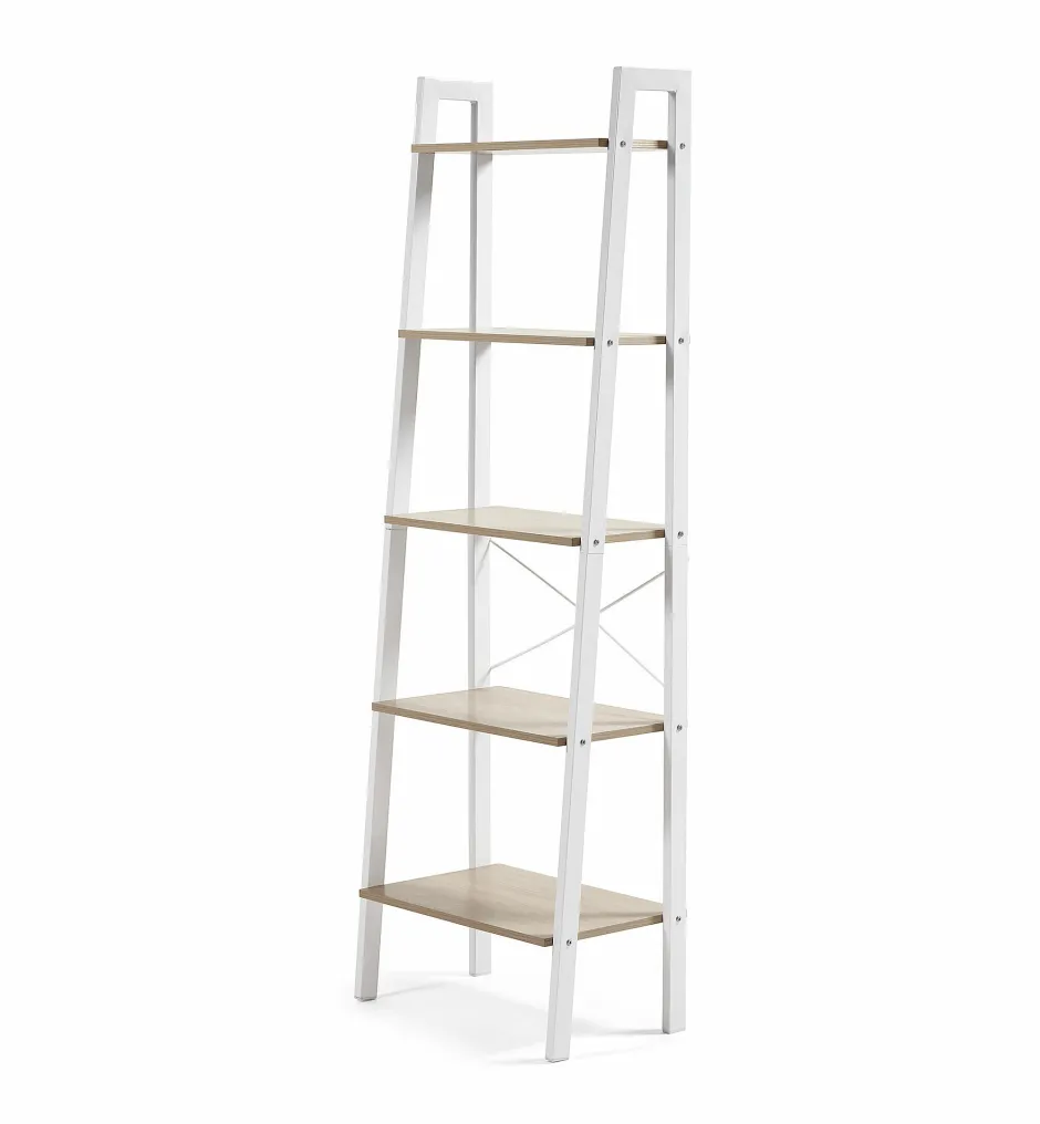 - Kast met 5 legplanken, gemaakt van MDF en een stalen frame.