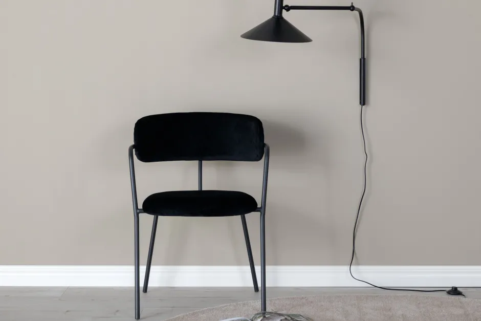 Stijlvol, praktisch en tijdloos – een eetkamerstoel die gewoon bij iedereen past! Saverio heeft een minimalistisch ontwerp met frame, poten en geïntegreerde armleuningen van zwart gepoedercoat metaal. De rugleuning is licht afgerond in hetzelfde materiaal als de zitting, gestopte zwarte fluwelen stof. Deze stoelen zijn even comfortabel als stijlvol en zullen zeker een succes worden in het hart van het huis! Lichtere montage is vereist.