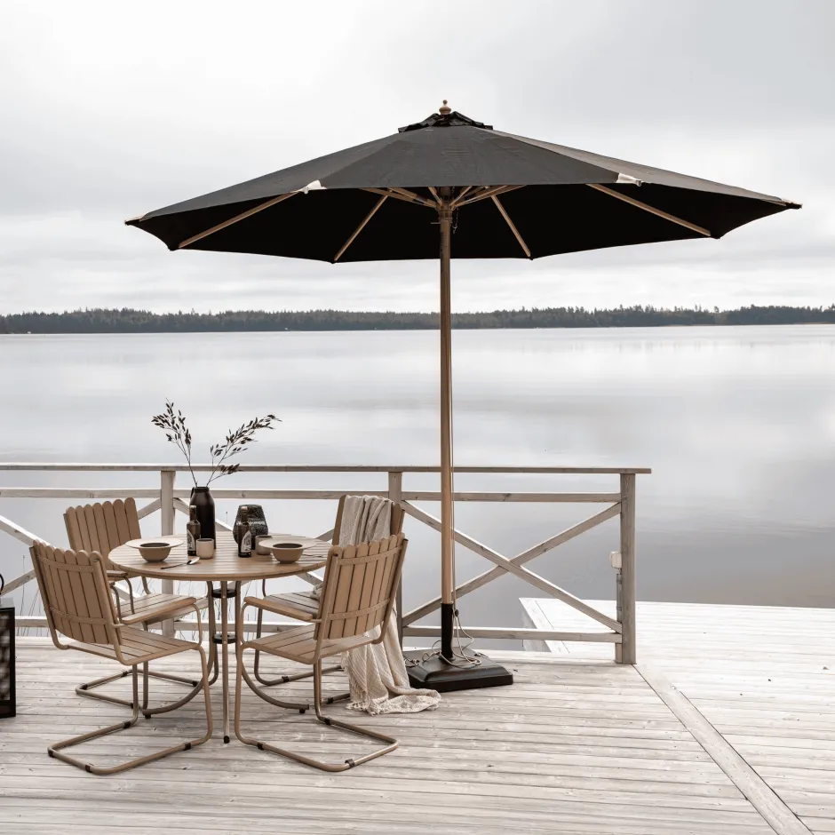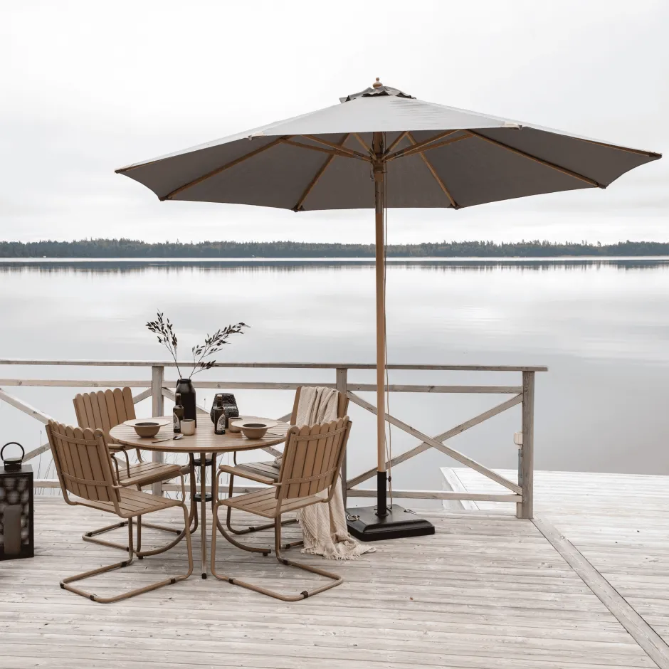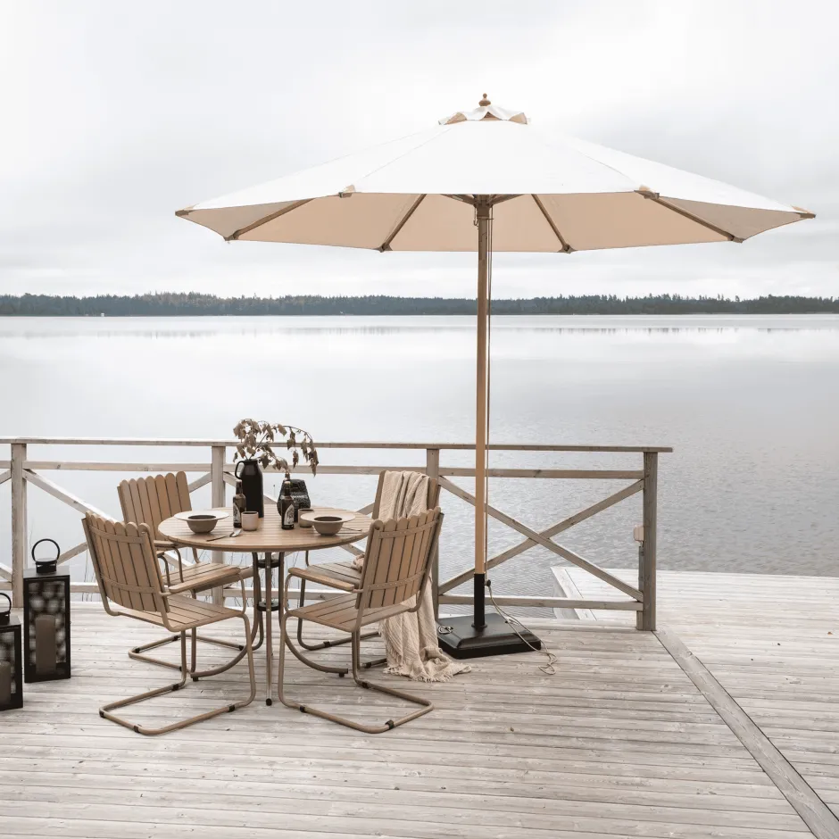 Nodig familie en vrienden uit voor een heerlijke lunch of ga lekker in de schaduw liggen genieten van het mooie weer tijdens Adi – de perfecte paraplu voor buiten. De paraplu is gemakkelijk uit te klappen en in elkaar te zetten, en met de witte stof tegen de standaard van hout ontstaat een moderne en tijdloze uitdrukking die bij alle huizen en stijlen past.