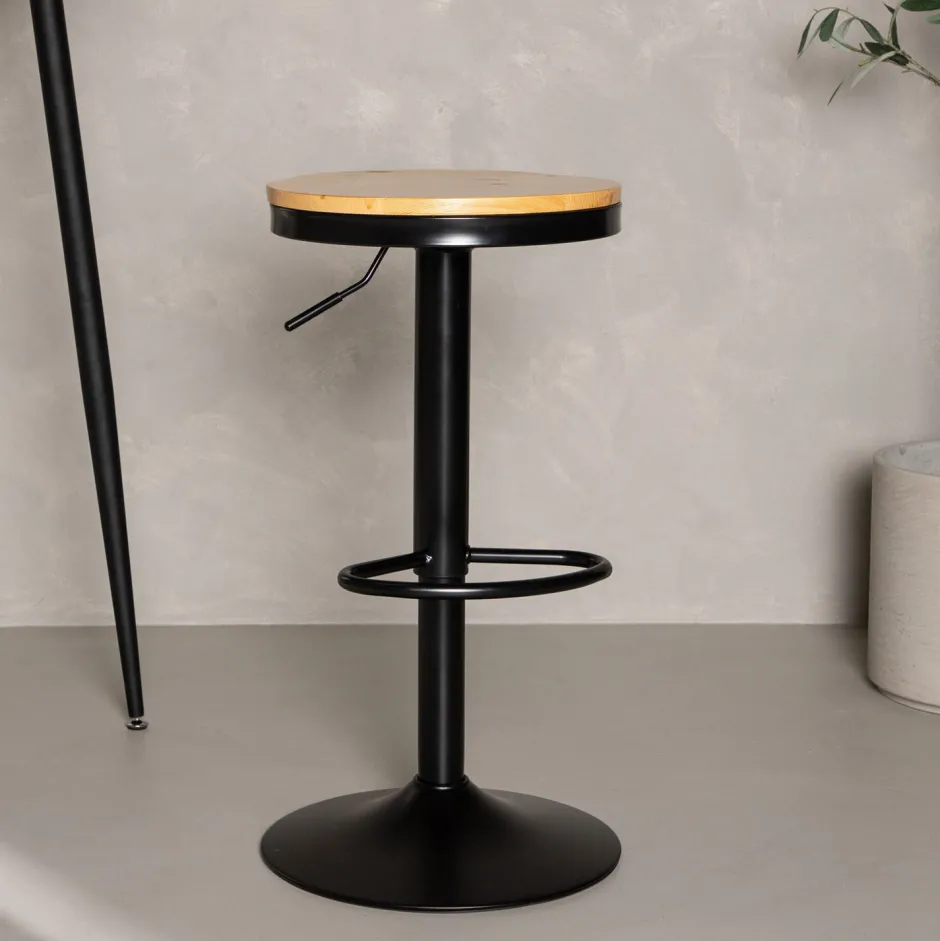 De Tiani barkruk behoort tot de Nohr collectie en heeft een stijlvol ontwerp met een trompetvoet van zwart staal en een eenvoudige ronde zitting van eikenkleurig MDF. Deze barkruk heeft een geïntegreerde voetsteun en is in hoogte verstelbaar voor extra comfort. Zet hem naast de keukenbar om wat extra gezelschap te verwelkomen of rond een hogere eettafel – even handig als praktisch gewoon! Deze barkruk verlengt de gedeelde momenten in het hart van het huis!