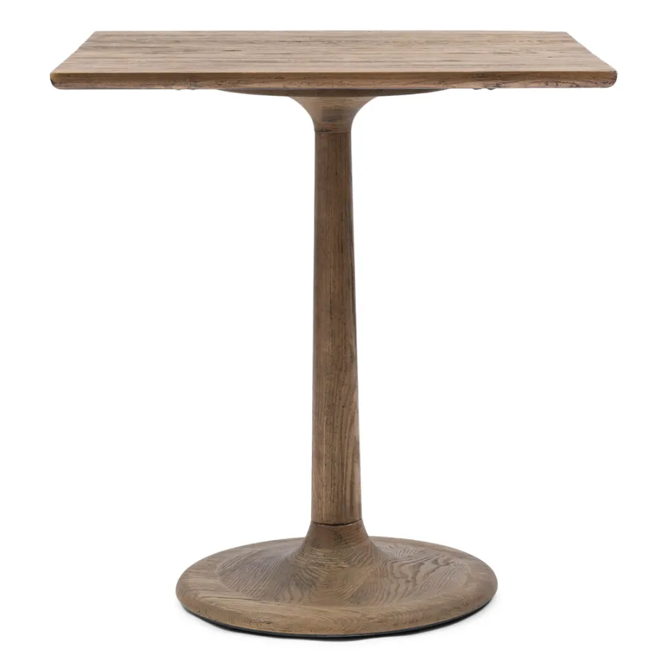 - Deze vierkante bistrotafel van teruggewonnen eikenhout biedt een perfecte mix van modern design en rustieke charme. Ideaal voor een koffiehoekje of als bijzettafel, en voegt een unieke uitstraling toe aan elk interieur.