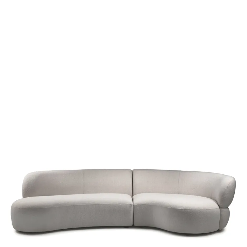 Creëer jouw ultieme ’thuis’ met de modulaire San Remo 2.5 zits Bank met de armleuning links. Bestaande uit een lounger en een corner. Het design van deze sofa is bedacht en ontworpen in samenwerking met Anna Nooshin. Deze rijke Bouclé stof in de kleur natural grey geeft de bank een moderne look en de organische vormen van de elementen maken dit een uniek design! Lounge en leef comfortabel en met de fauteuil en voetstoel te combineren maakt dit de chique look compleet.