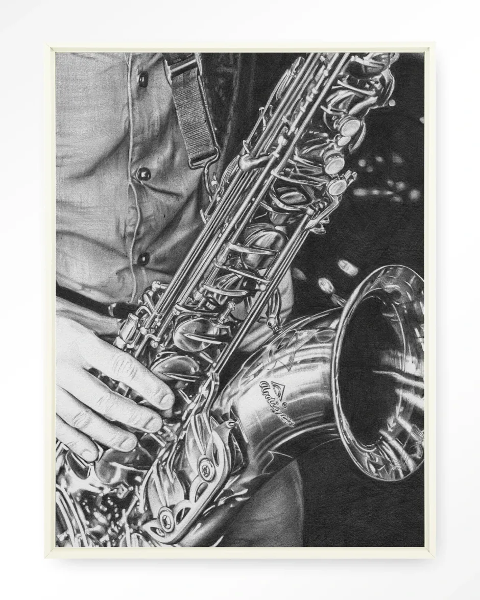 Sale Urban Cotton Wandkleed The Man With The Sax in maat en frame naar keuze