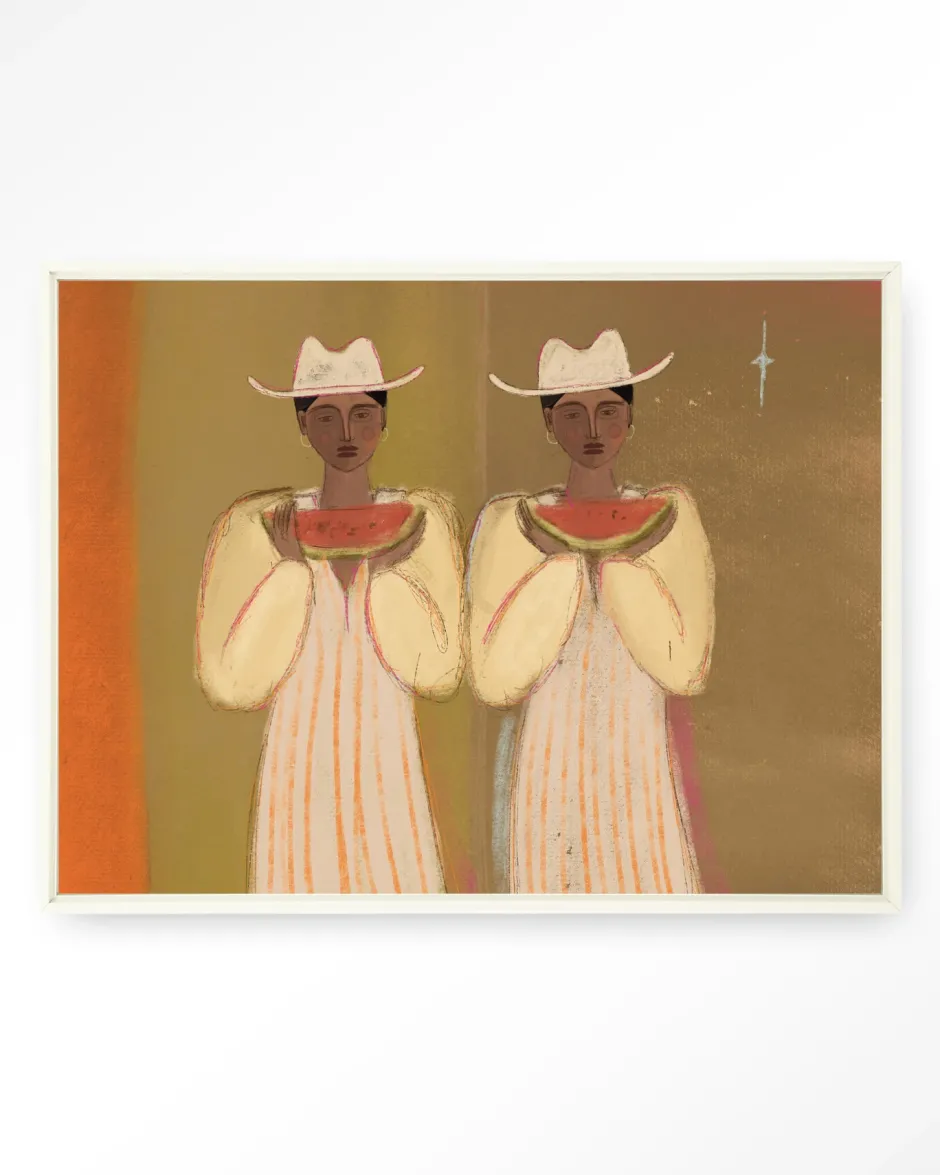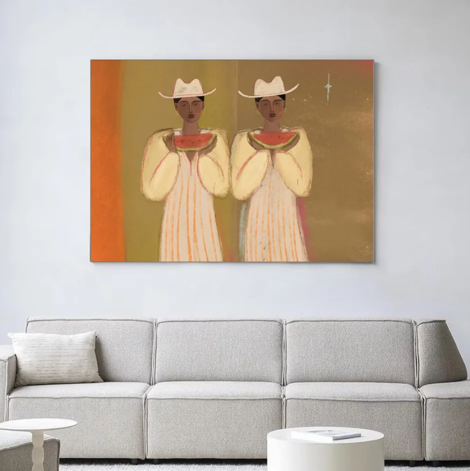 Sale Urban Cotton Wandkleed Watermelon Girl in maat en frame naar keuze