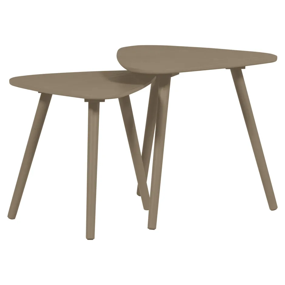 De Nila bijzettafelset van 2 tafels is een stijlvolle en praktische toevoeging aan ieder interieur. Deze set komt uit de collectie van het Nederlandse merk WOOOD. De organische, driehoekige vorm van de bladen en de slanke poten geven de tafeltjes een moderne en speelse uitstraling. Gebruik ze samen als dynamische salontafel of apart als handige bijzettafels, de mogelijkheden zijn eindeloos. Dankzij het compacte formaat en het lichte gewicht zijn de tafels eenvoudig te verplaatsen en steeds opnieuw naar wens te stylen.