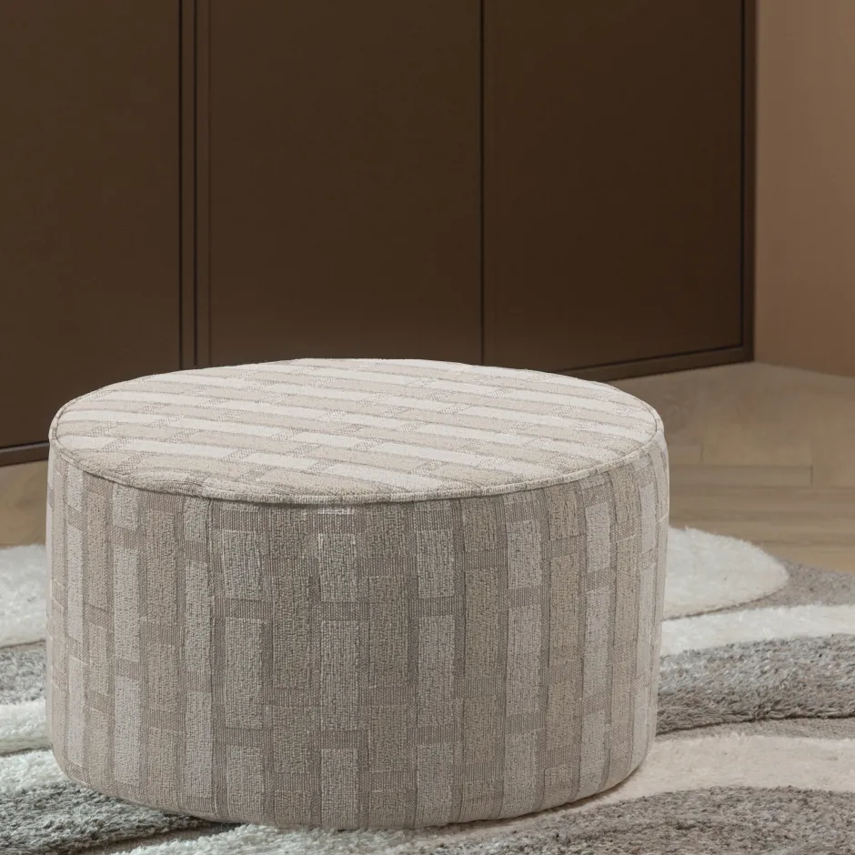 De poef is bekleed met een luxe dessin chenille stof van 100% polyester. Deze zachte stof heeft een Martindale waarde van 20.000, waardoor de stof met juist onderhoud jarenlang zijn mooie kwaliteit kan behouden. Chenille staat bekend om zijn zachte textuur en comfortabele aanraking. De stof geeft de poef een hoogwaardige uitstraling en voelt prettig aan. Het product is FSC gecertificeerd.