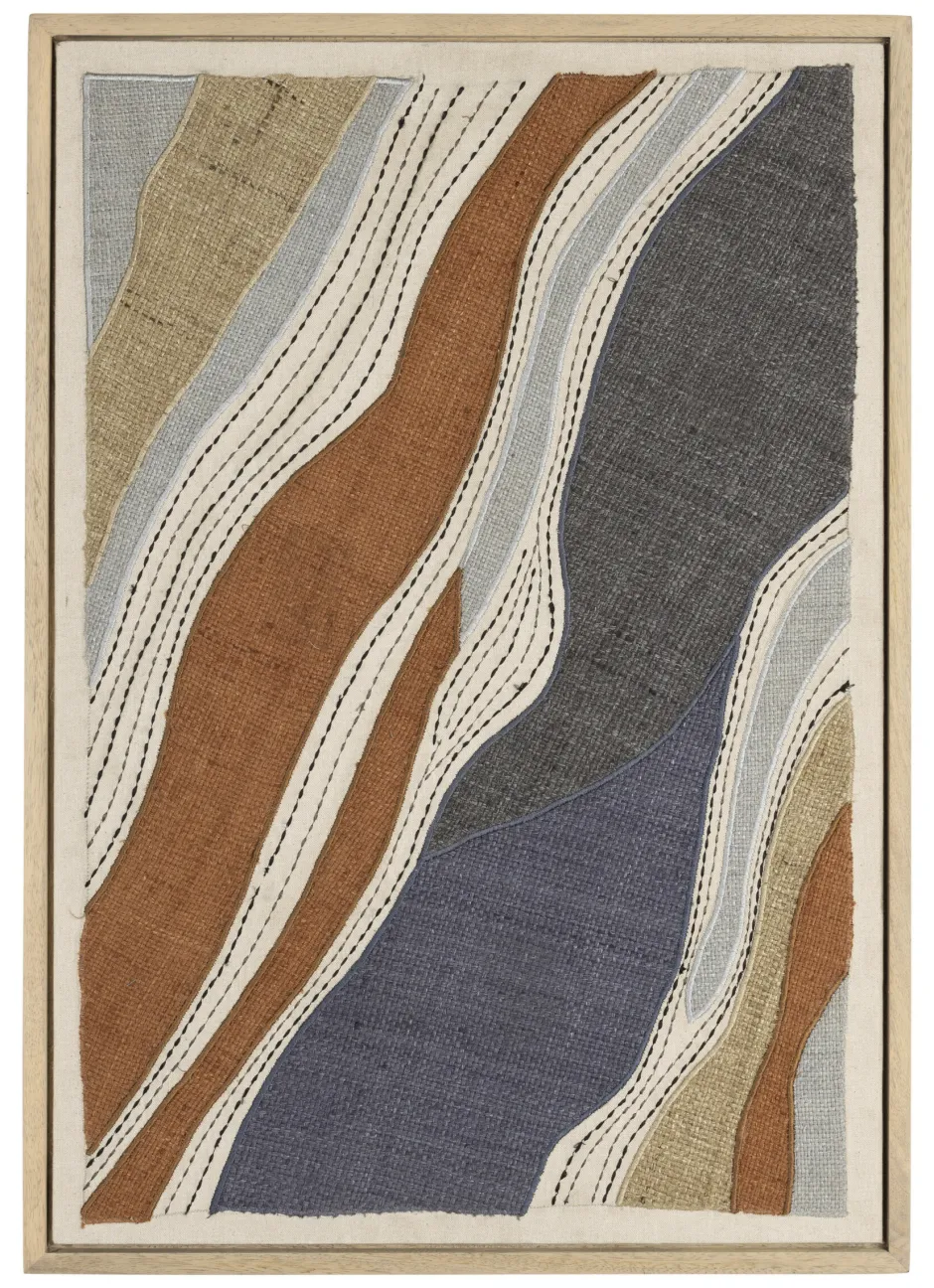 Bewonder het complexe patroon dat doet denken aan een stromende rivier, waar iedere blik een nieuw betoverend detail onthult. Zorgvuldig vervaardigd met de fijnste stukken stof, vertelt iedere stof een eigen verhaal op het canvas.