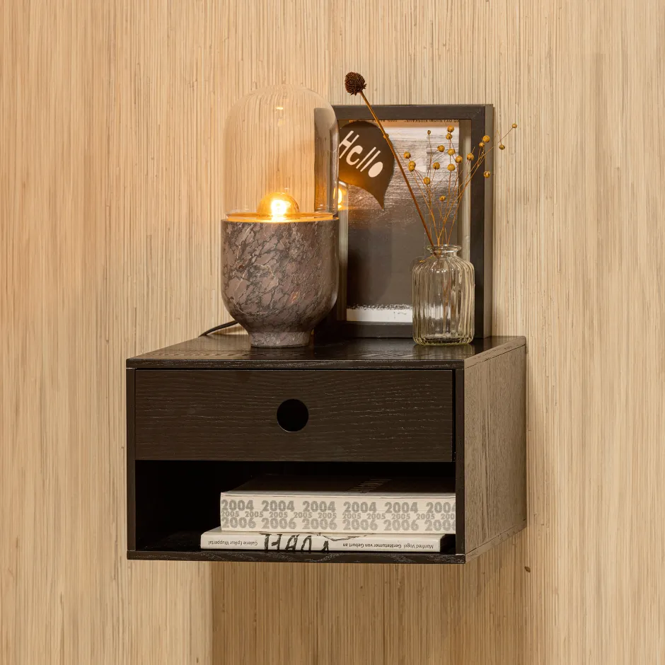 Het Nancy hangende nachtkastje komt uit de collectie van het Nederlandse interieurmerk WOOOD en is onopvallend stijlvol door het eenvoudige design. Het gebruik van het afgelakte MDF hout zorgt ervoor dat het nachtkastje kalmte uitstraalt en zich gemakkelijk in de stijl van jouw slaapkamer voegt.