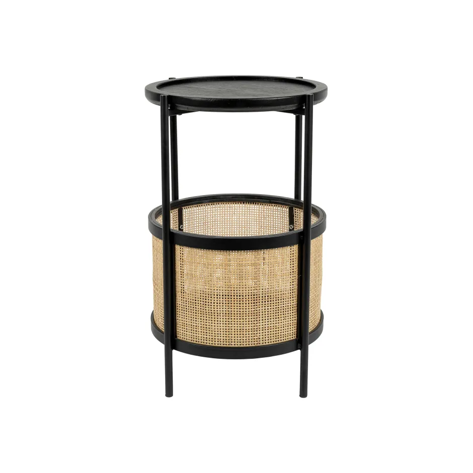 Merk:ZILTMateriaal:MDF blad met rotan zijkant en gepoedercoat ijzeren potenDiameter:30cmHoogte:50cmMaximum belastbaar ge…