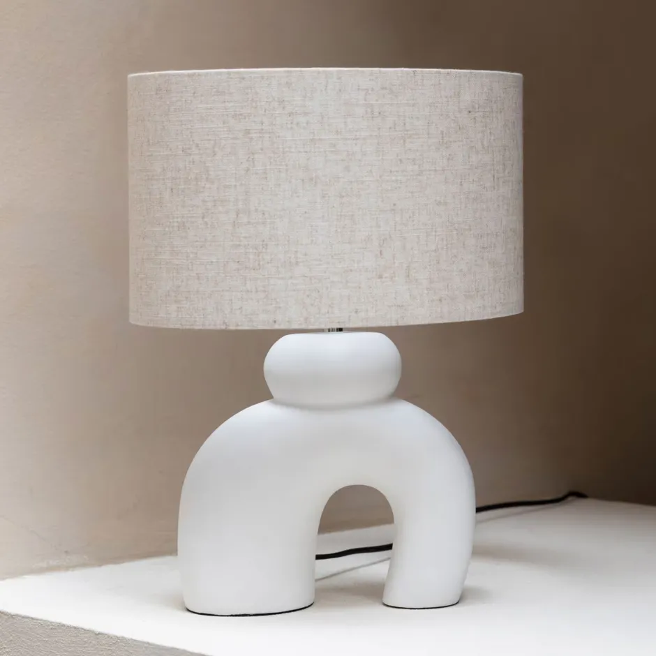 Klein van formaat, maar toch groots in uitstraling. Het eerste dat opvalt aan de Bibi tafellamp is de organisch gevormde voet. Het matte keramiek vormt een imperfecte boog, waarop je je fantasie de vrije loop kunt laten. Wat zie jij erin? Daarnaast voegt de linnen lampenkap een stukje warmte en sfeer toe.